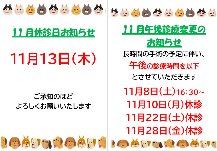 ⚫11月休診日・診療時間変更のお知らせ⚫