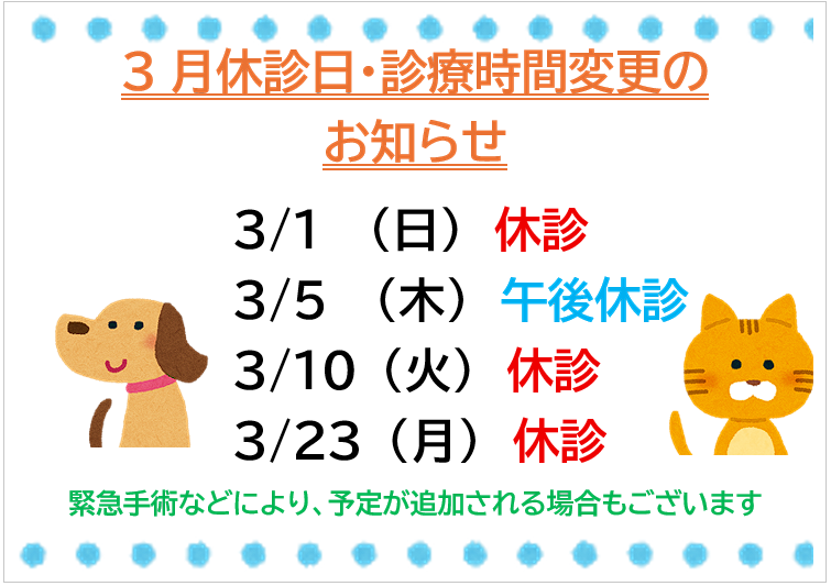 (緊急手術の予定に伴い、予定が追加される場合もございます。その際は随時お知らせいたします)